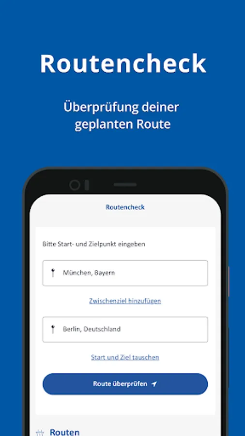The most important feature of the Autobahn app is the route check: Simply enter your starting and destination points and, if necessary, select further intermediate destinations. The app shows you the current traffic situation, provides information on the exact route and offers the option of switching directly to your navigation app from there. Your entered route will then be automatically adopted. Do you often drive the same routes? Then you should save as many routes as you want locally in the Autobahn app. So you don't have to keep entering the data and always have an overview of your preferred routes.