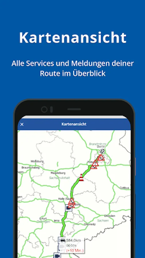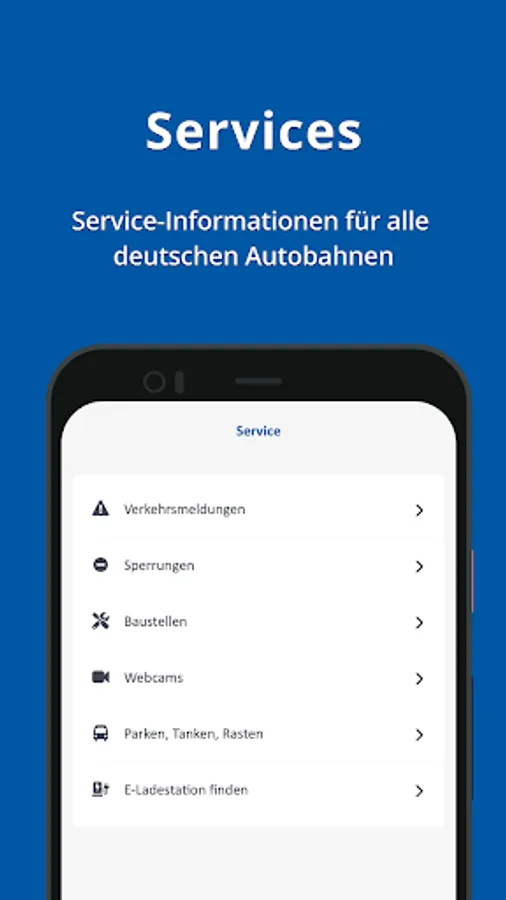 The Autobahn app appeals to users of the German autobahns who, in addition to the possibilities of their navigation app, are looking for further reliable information on the federal autobahns. In particular, frequent users such as commuters or professional drivers receive valuable additional information on the current traffic situation and planned and current construction sites. Diversions and road closures are also integrated in the app. In addition, the app can be linked directly to the personal navigation app.