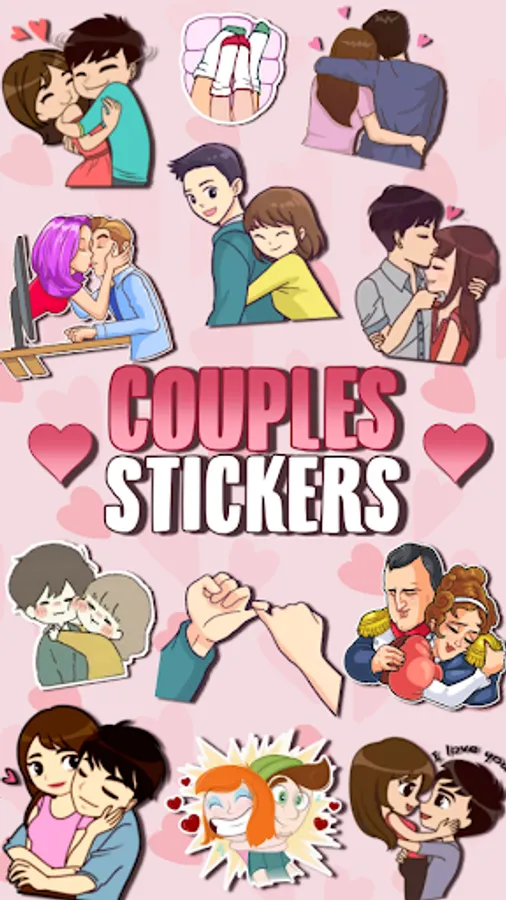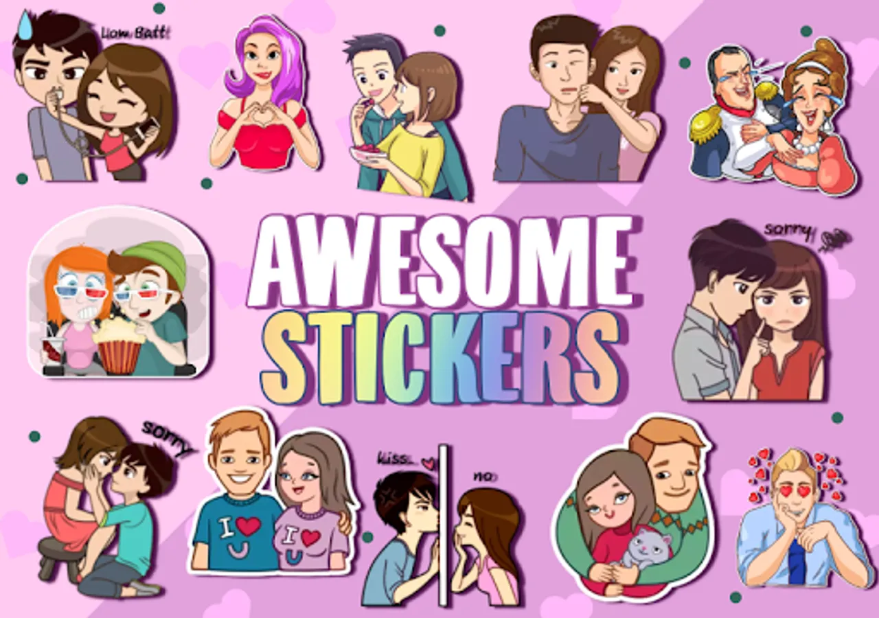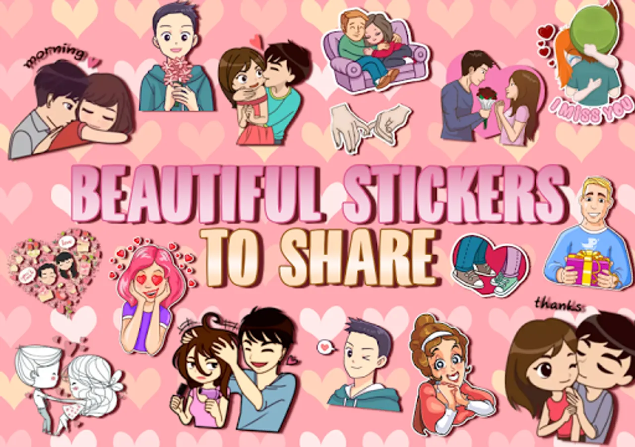 Hundreds of WAstickerApps that tell love stories and love gestures between couples! Very cute and fun stickers for whatsapp of couples happily in love where they kiss, hug, wish each other good things and much more!