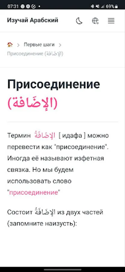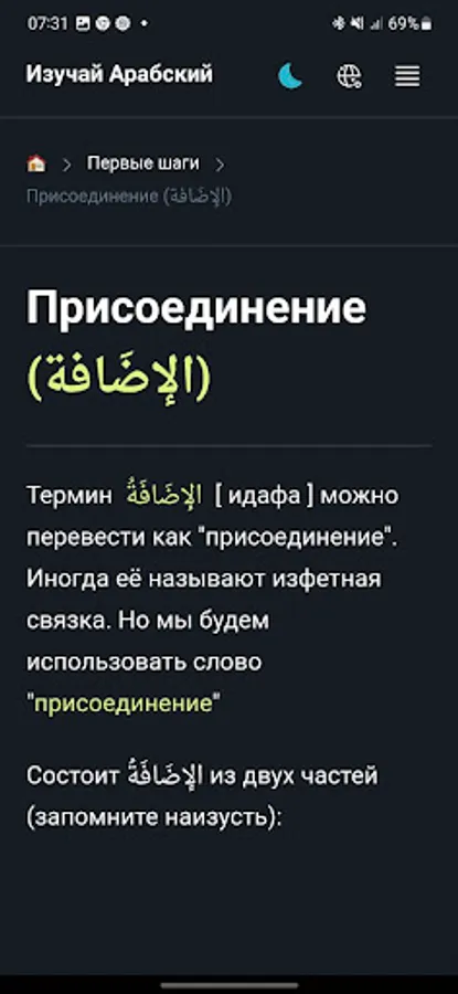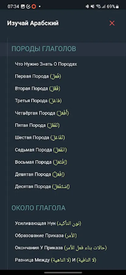 Arabic language rules from elementary to advanced topics. Examples and schemes. Materials taken from various Arabic courses