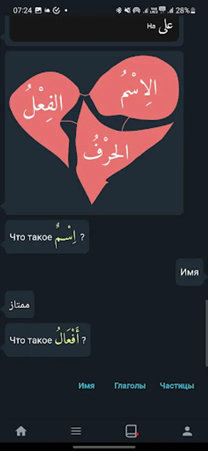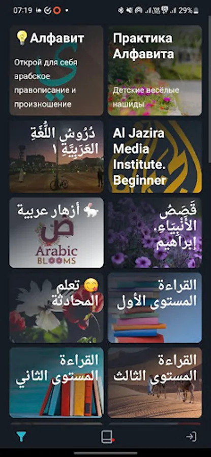 Arabic practice app for any level. Consists of multi-level programs that include audio, images, translations of Arabic applications, grammar explanations and a question-answer module