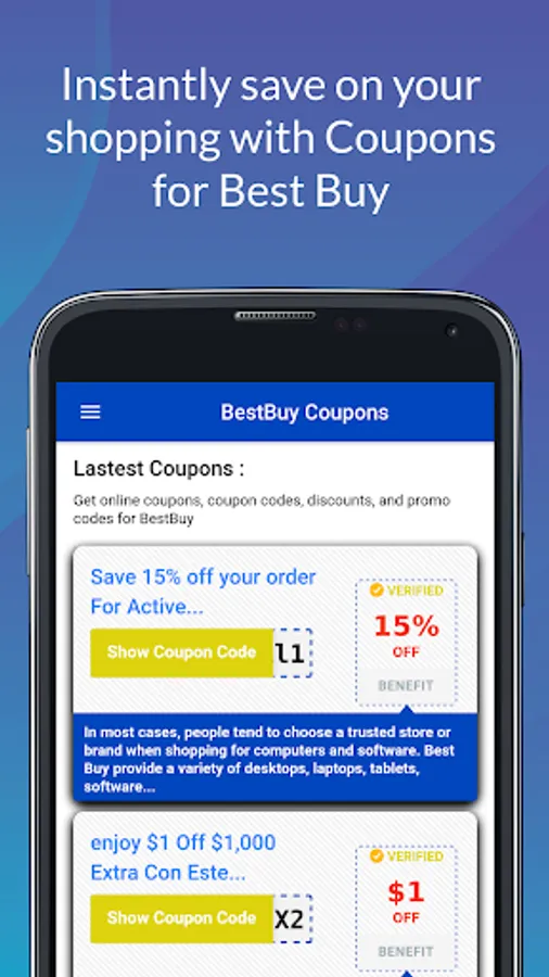 Within this app, you'll find all Coupon for Best Buy in less than a minute.