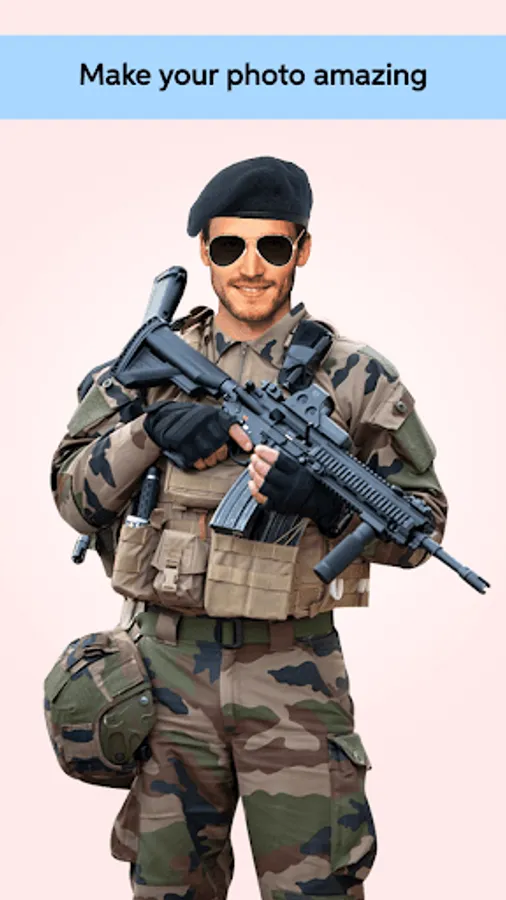 Your Photo will look like a real Military Man in just few seconds with fantastic Military Man Photo Editor App.