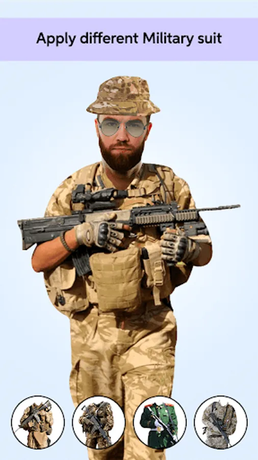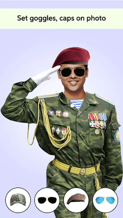 You can have fun with your friends by using this photo editing dress changer application. With this amazing application you can put your face into several nice Military Man Photo Suit .