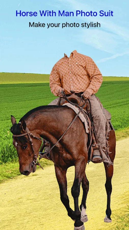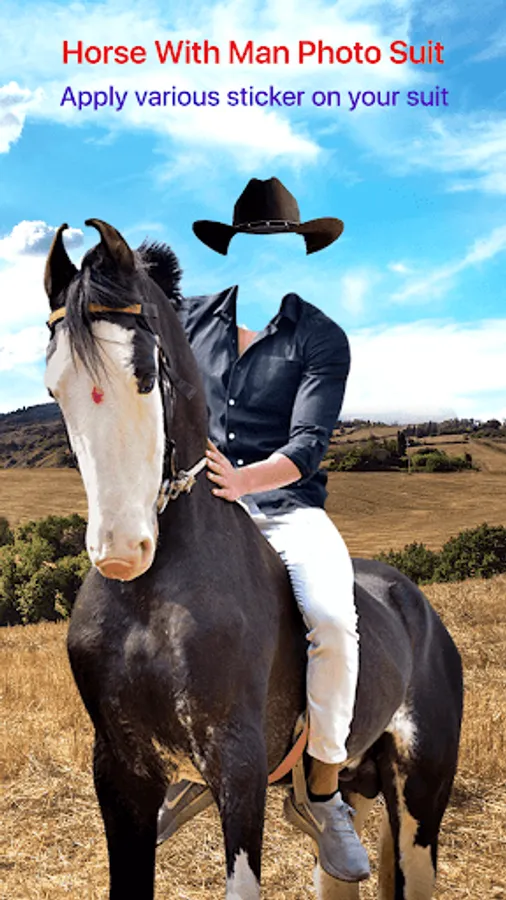 You can depict your picture more beautiful, attractive, fantastic, amazing, wonderful, fabulous, tremendous, great, remarkable, and decorate with the help of Horse With Man Photo Suit App.
