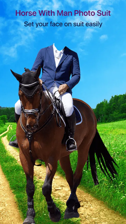 set your beautiful face in single touch . as per your need you can change your look with using different Horse With Man Suits.