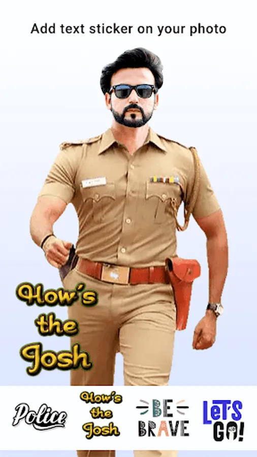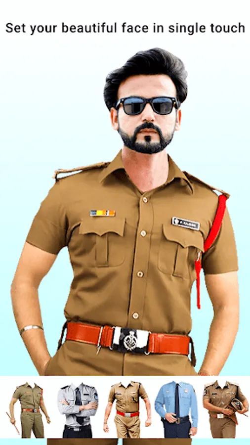 set your beautiful face in single touch . as per your need you can change your look with using different Police Suits.