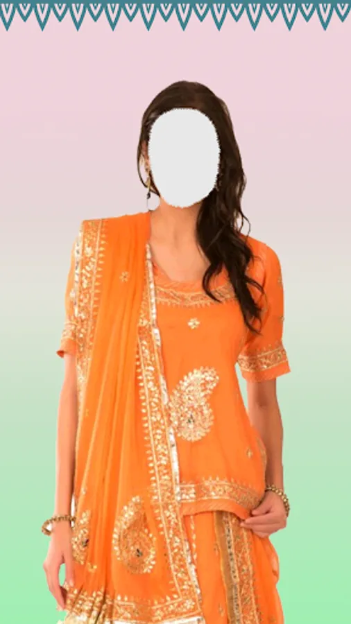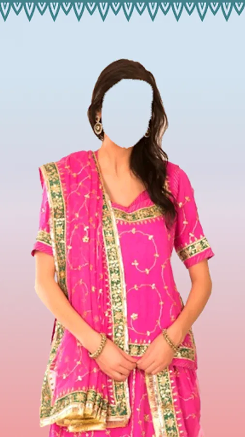 - Take your photo and put on to the Rajasthani Woman suit image.