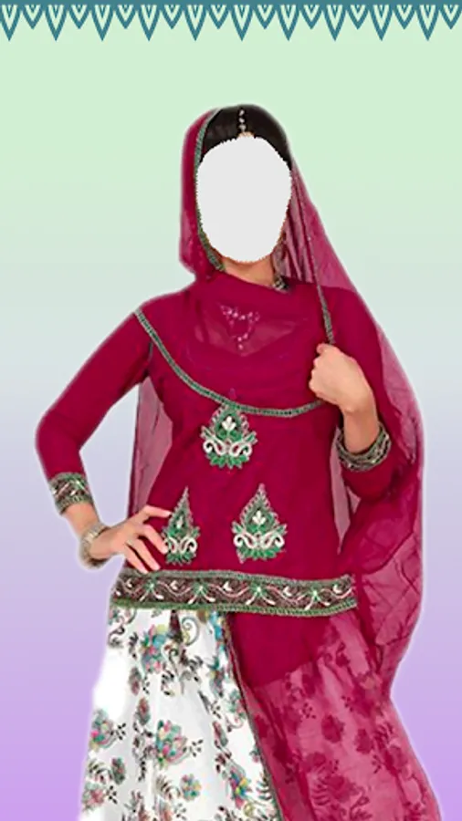 With this amazing application you can put your face into several nice Rajasthani Woman Suit .