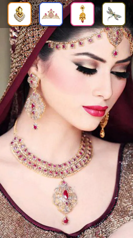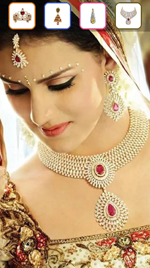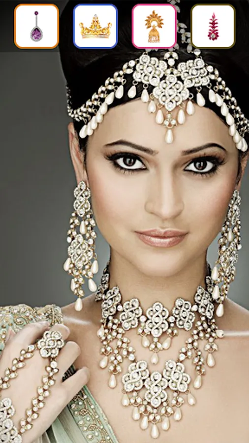 Select Jewellery patterns designs from app and make your look beautiful with bindi, nacklace, earing, piercing and crown. You can pick a best sticker from the list according to your requirement.