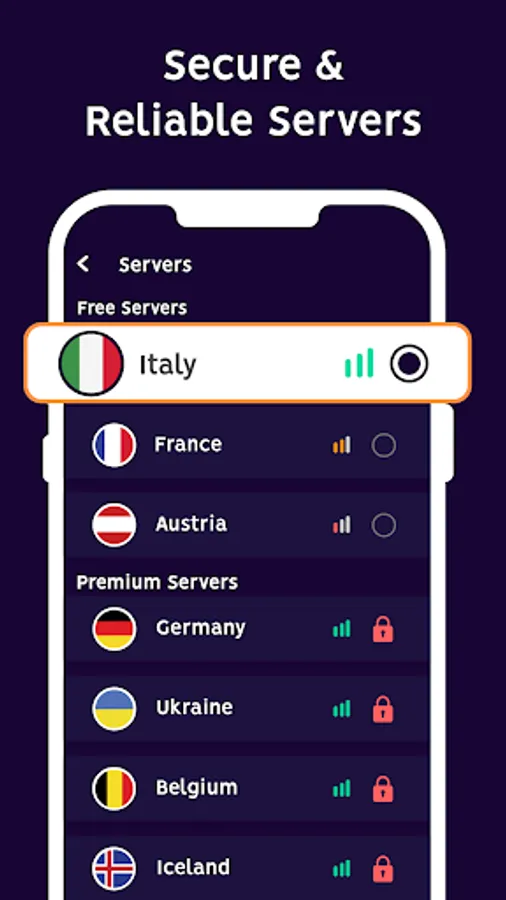 Quick VPN has premium servers for premium customers with enhanced speed and security. Users can enjoy server of their favorite location for unblocking content or any other purpose.