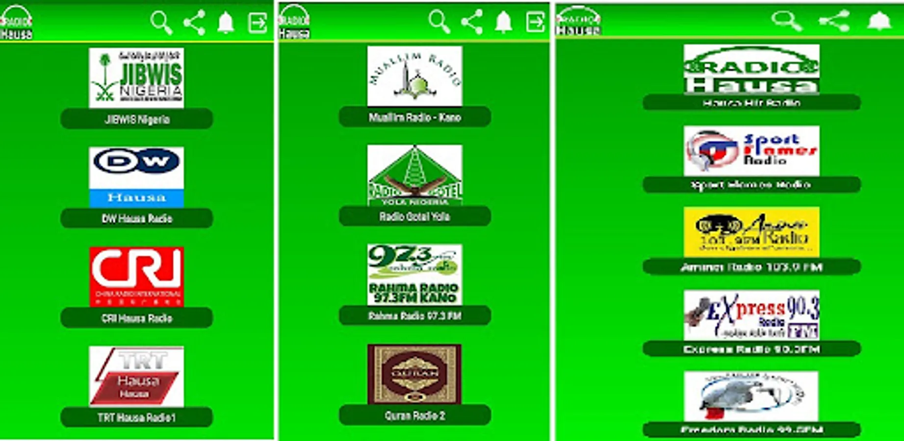 Featured Hausa Radio Stations like; Zumunta Canada, Fresh 105.9 FM Ibadan, BBC Hausa, Deutsche Welle Hausa, Express Radio, Hausa Internet Radio, Hausa Hip-Hop, Liberty Radio Abuja, Huda Radio FM, Muallim Radio, Canal Hausa FM90,