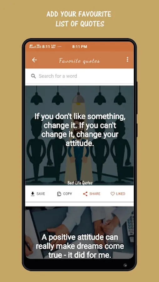 This application has more that 50000's of quotes in various categories like Motivation, lonely, Family, Alone, Love, Attitude, Learning, Success etc,.