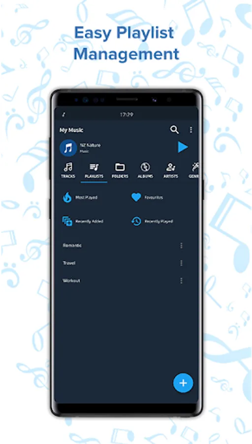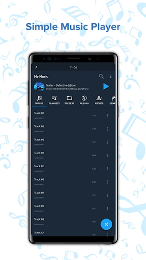 1. Organizes music in 6 categories by default - TRACKS, ALBUMS, ARTISTS, FOLDERS, GENRES, PLAYLISTS.