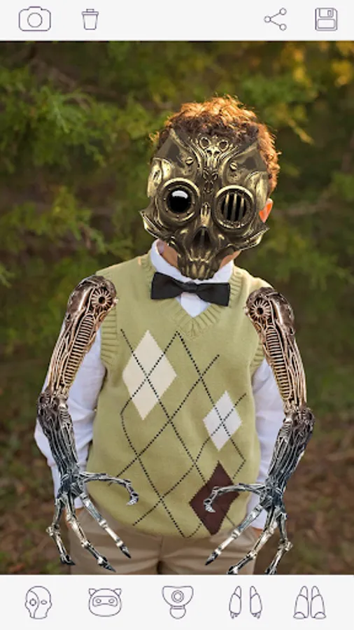 ✔ Cyborg camera allows you to change your body or change face to cyborg face on photo.
