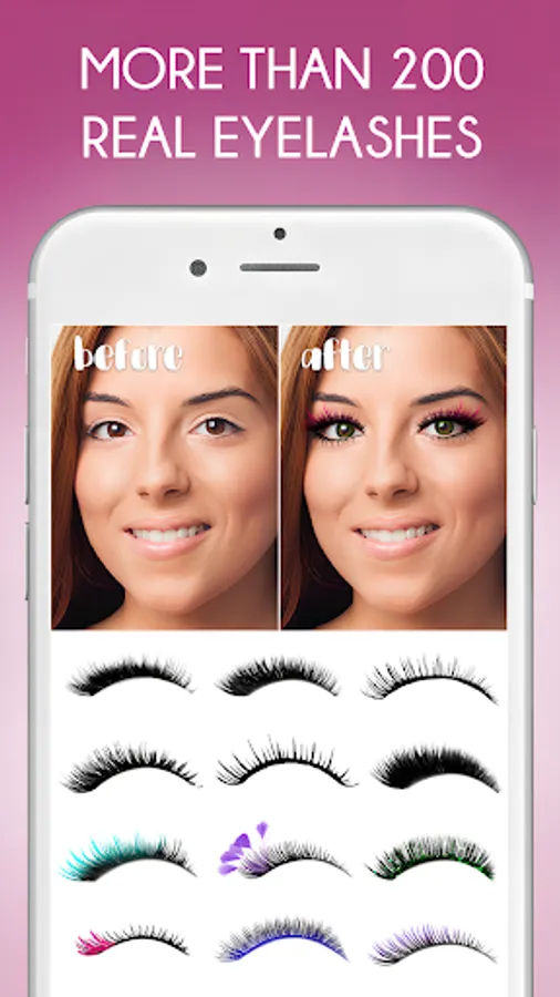 Eyelashes camera allows you to add false eyelashes on photo so easy! Just add lush eyelashes to the photo and get likes and enthusiastic comments from your friends! Look how lovely you are with false eyelashes or pink eyelashes on photo. Eyelashes photo camera is FREE! Create best Eyelashes makeup photo with beautiful Eyelashes stickers in 10 seconds with Eyelashes photo editor!