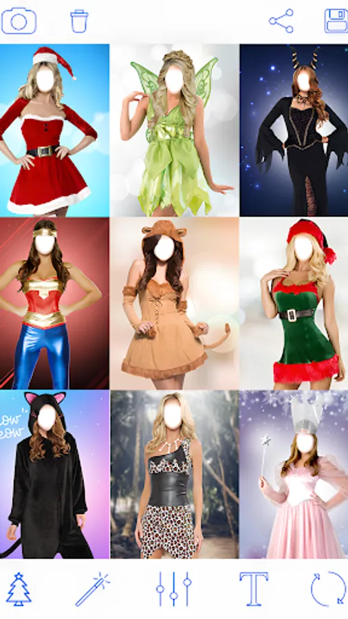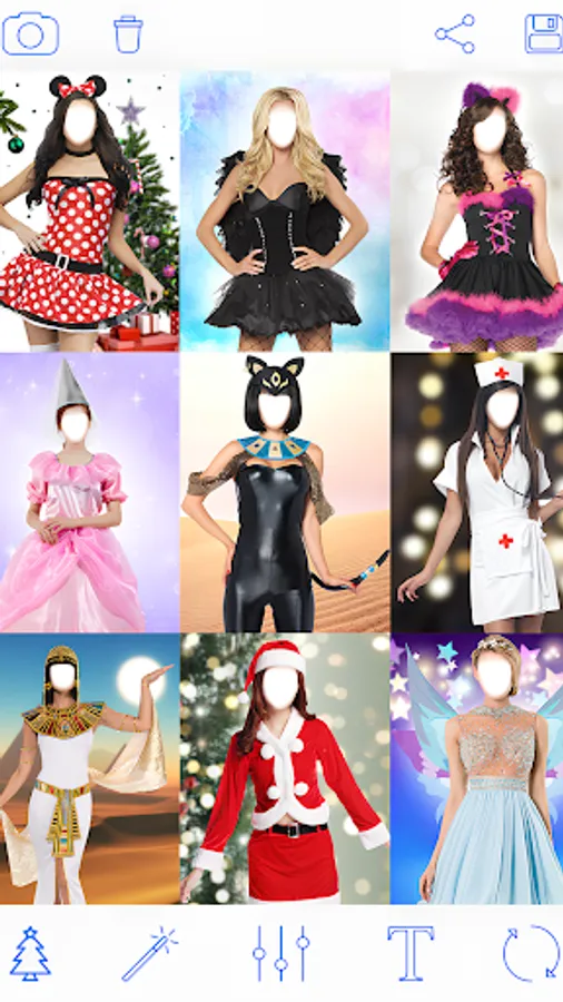 🎅🏻 Christmas costumes photo editor has a tons of amazing girls costumes for your New Year selfie photo: