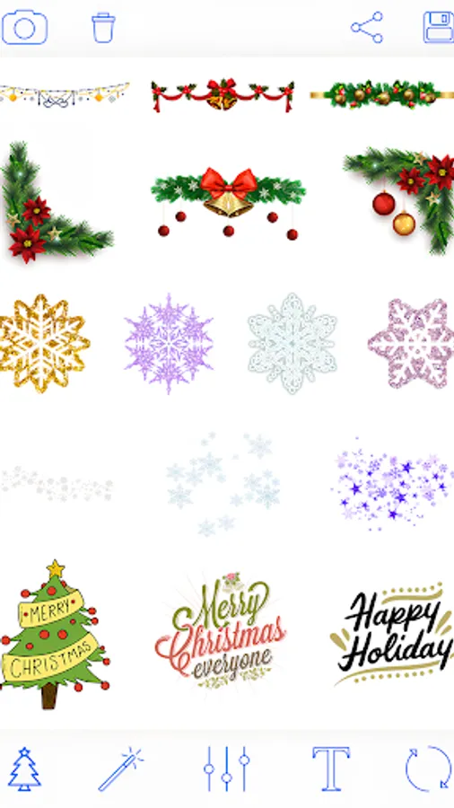 ★ Add Christmas stickers on New Year photo like snowman, Santa Claus, polar bear or snowflakes stickers!