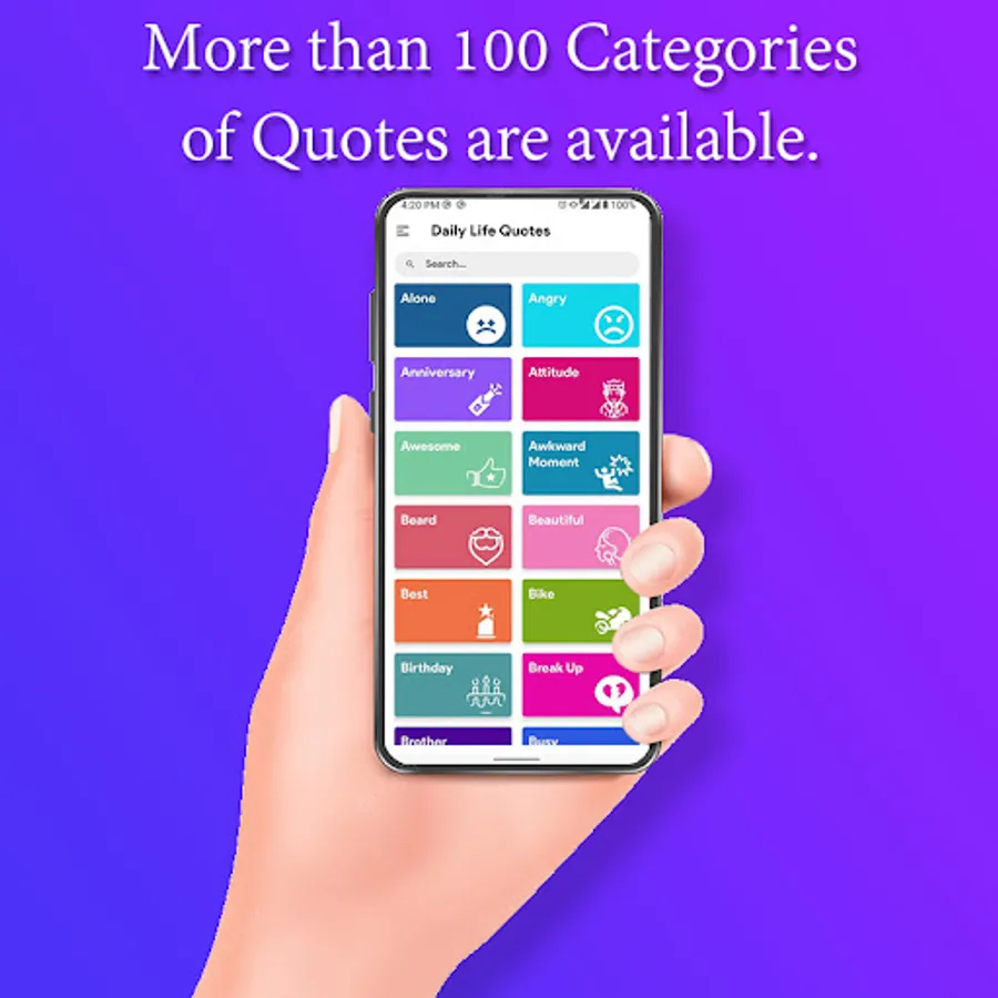 The daily quotes and status App has a vast variety of Quotes and sayings with the names of Authors with a stock of many background images. User can edit or create their own quotes