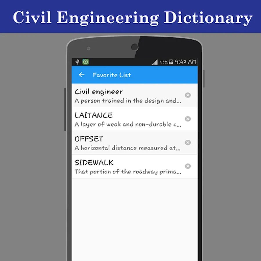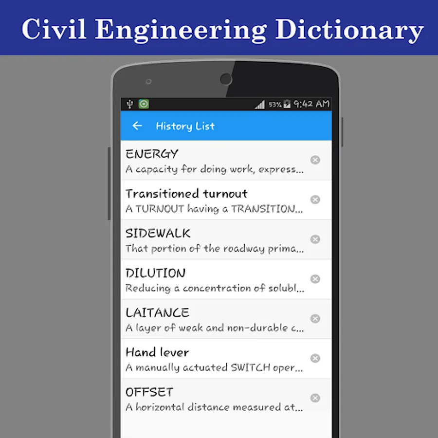 The free offline Civil Engineering dictionary application explains the meaning of Civil Engineering words