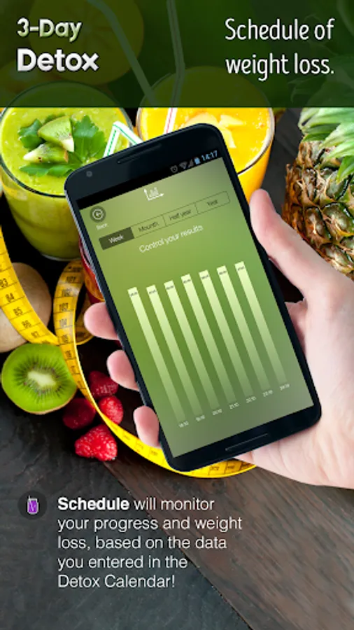 * Schedule of weight loss. Schedule will monitor your progress and weight loss, based on the data you entered in the Detox Calendar!