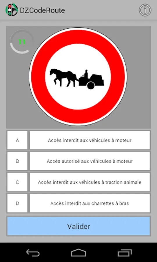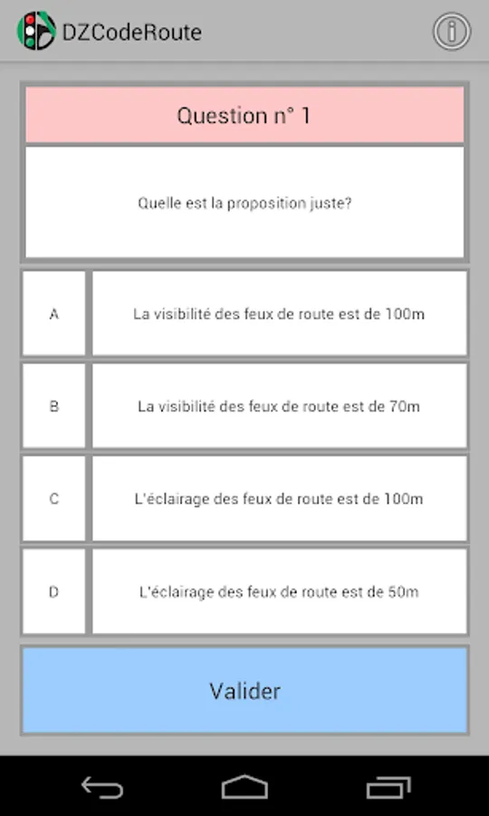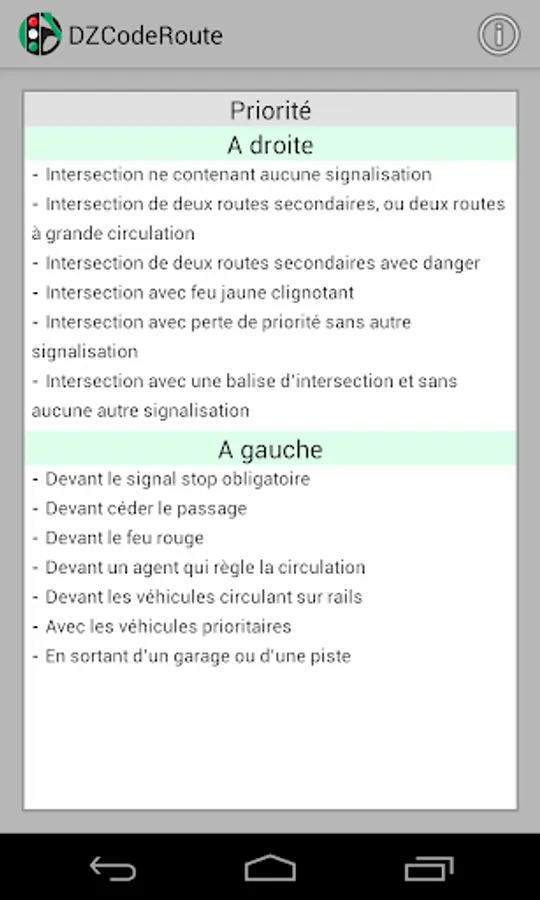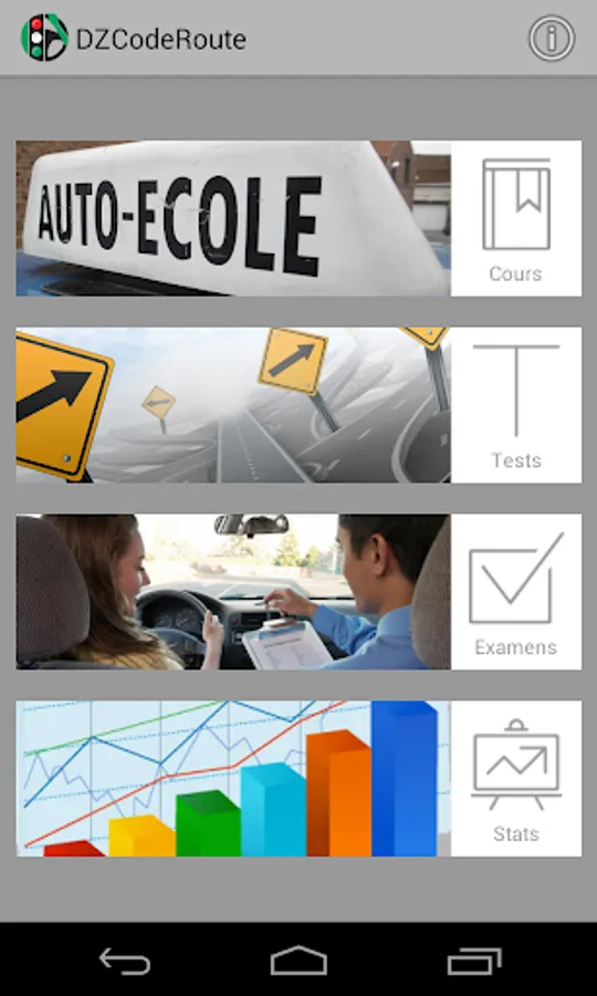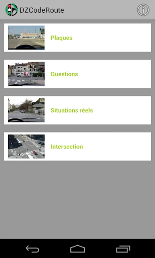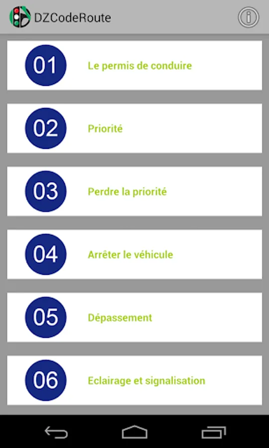 DZCodeRoute is an application that allows candidates for driving license learning the Highway Code of Algeria. And this, by providing:
