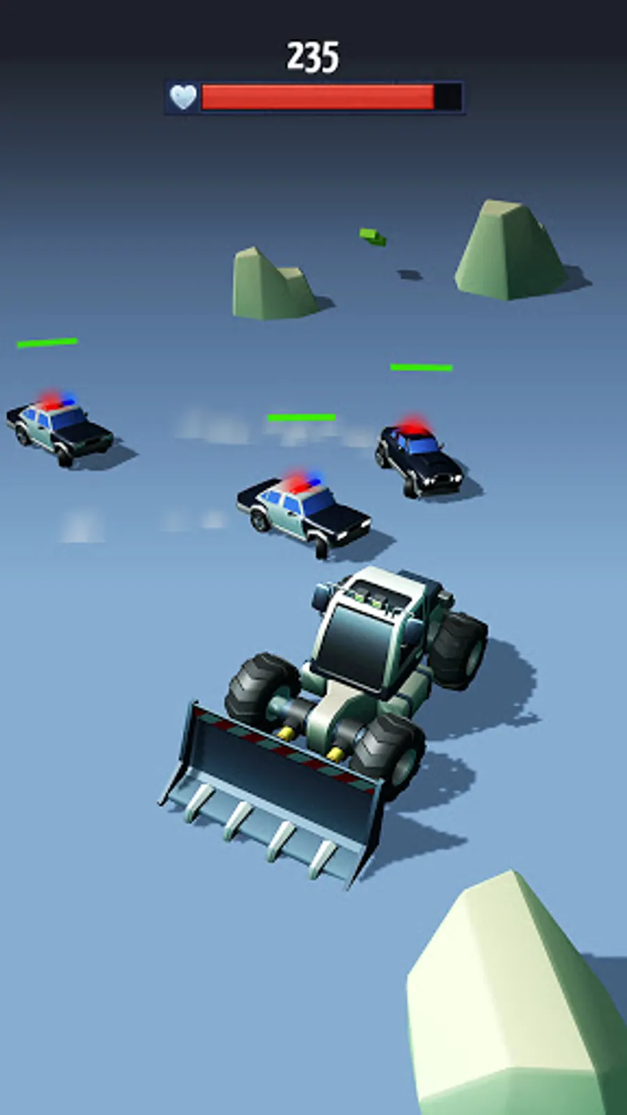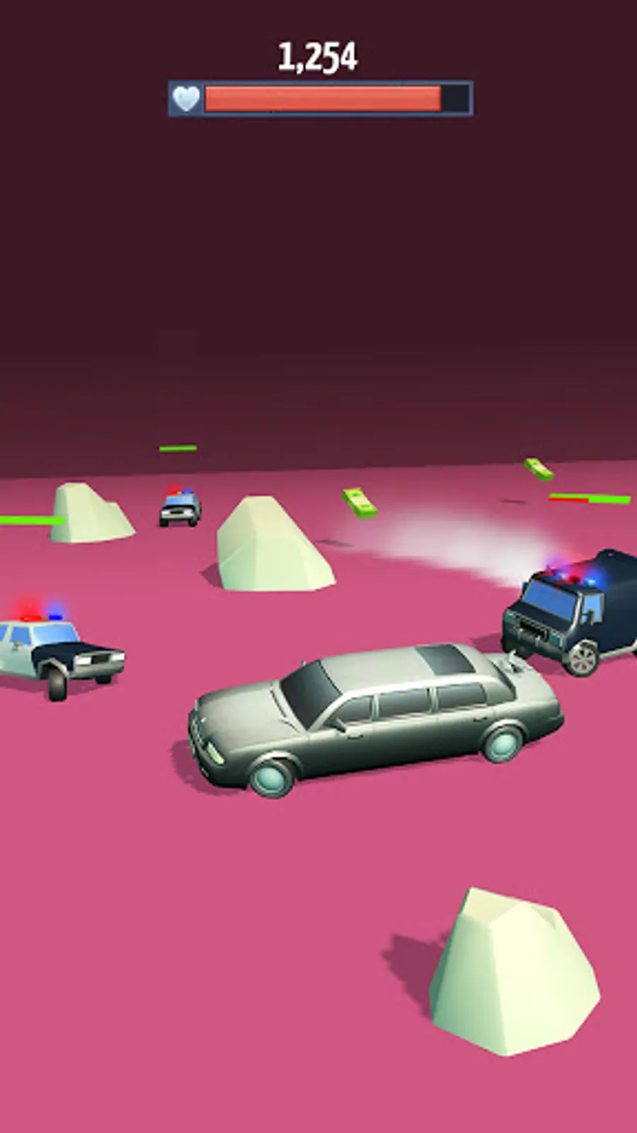 Get in to hyper police chase, loot and run. The faster you are the more you can earn. If you want to loot more upgrade cars for the best heavy vehicles. Collect cash and health in between the chase to earn and survive more. Upgrade to best vehicles like, bulldozer, pickup cars, monster car, limousine, trucks, fire truck, bus.