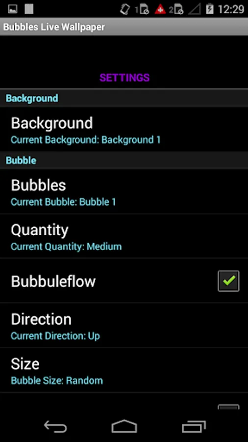 Download this "Bubbles live wallpaper" to decorate your mobile screen with beautiful color water bubbles. In this free live wallpaper you can set different types of water bubbles with various animations. You can customize backgrounds, bubbles animation, quantity, size and directions. And also there is two types of animations included, are Magnetic and Air flow...