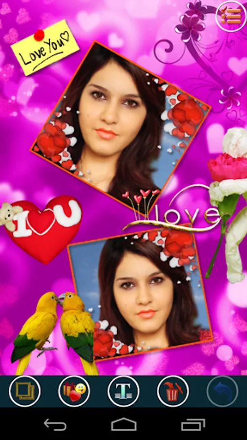 Love Images You can add your beloved photos with various type of shapes on love backgrounds. Add stickers and text.