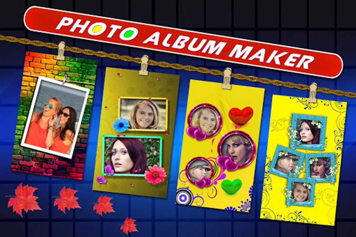Create beautiful photo albums with this "Photo Album Maker" application and send,share in online platform... In this Application we included too many collections of single,double,triple and quadraful frames to create photo collages..You can add different types of stickers like love,friendship,flowers and etc... You can add names and titles with text option...