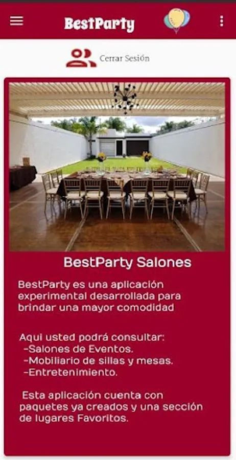 BestParty is an experimental app that seeks to facilitate the process of holding events, in the matter of booking and consulting sites. It also provides the ability for the user to directly contact the site he likes.