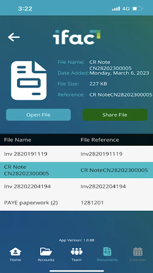The ifac app allows clients to share bank information with ifac using their banks authentication. The client can also view the accountants and ancillary staff working on their accounts and view documentation sent by ifac to the client.