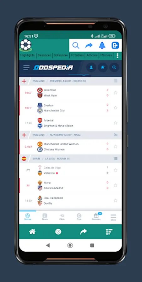 BetSport Livescore App keeps you up-to-date with your favourite games, leagues and cup competitions.