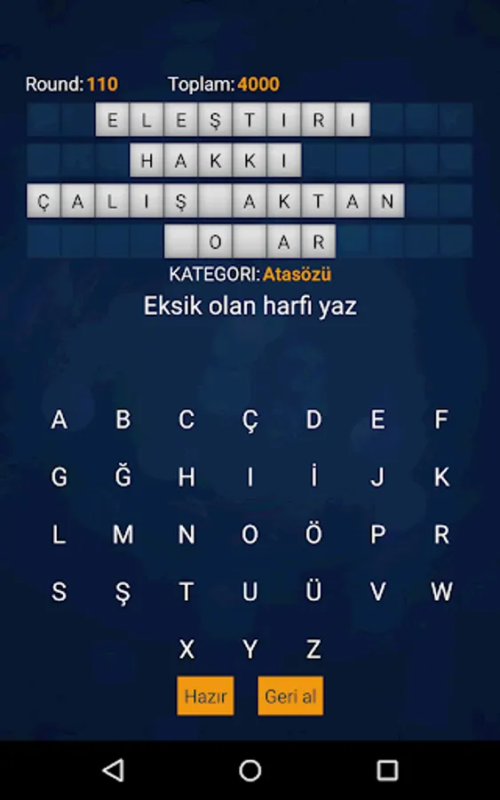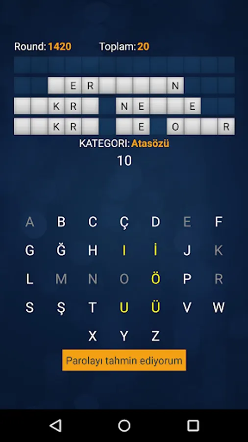 The player's goal is to predict the correct word or phrase in the selected category.