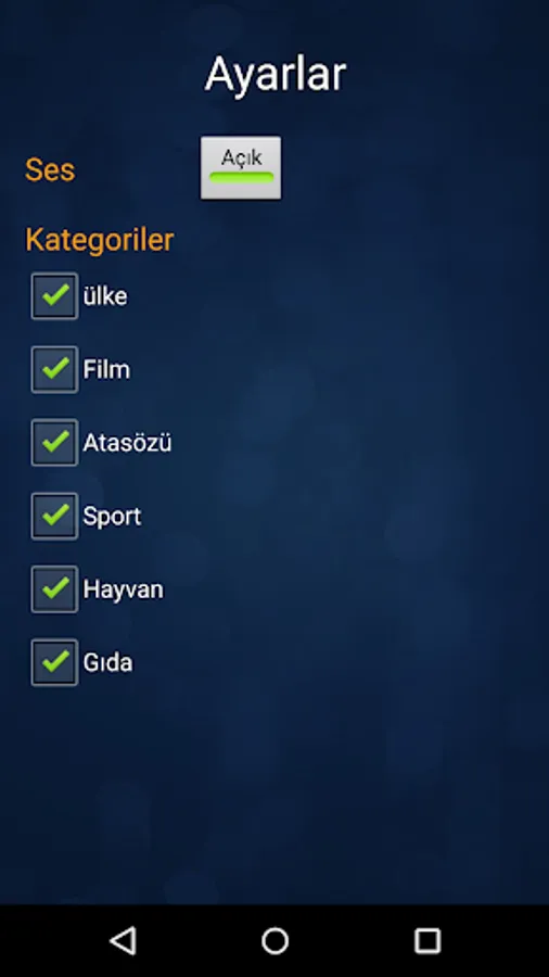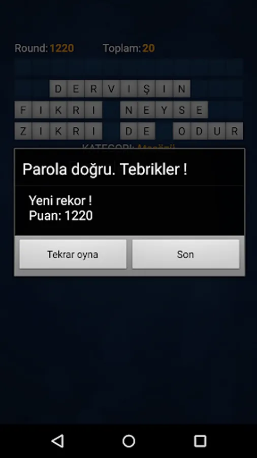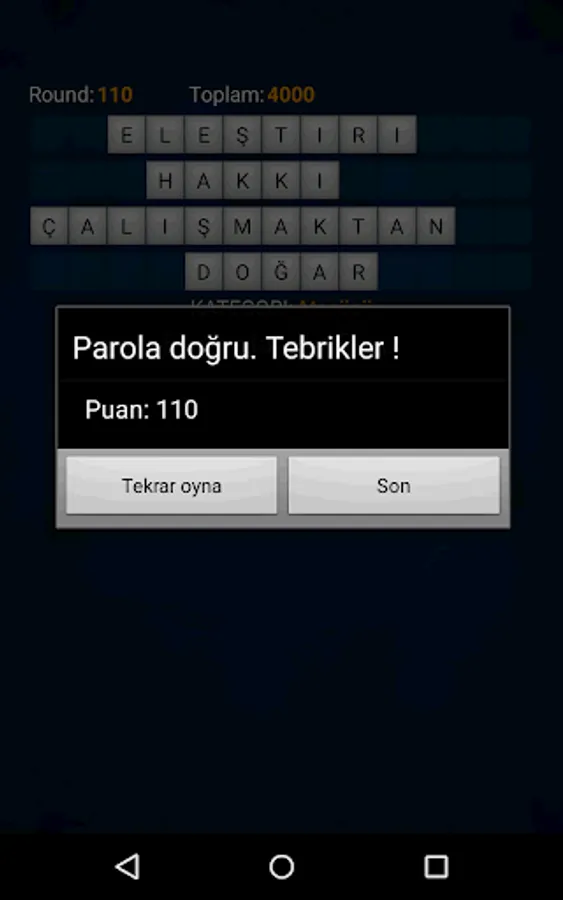 Single or double play facilities. Single There are two modes in the game: the classic game, and race against the clock. For the moment the game contains six categories password.
