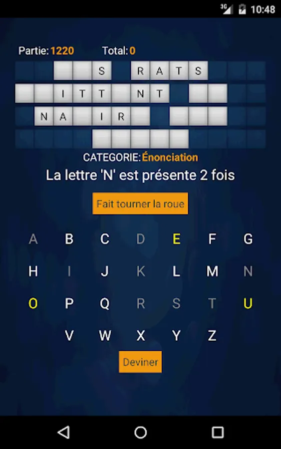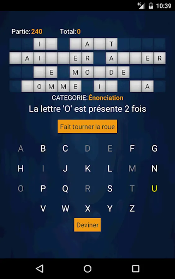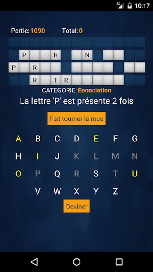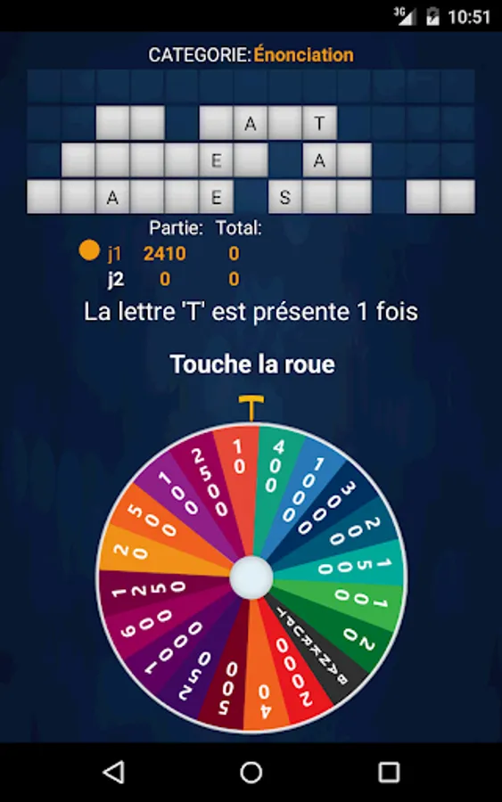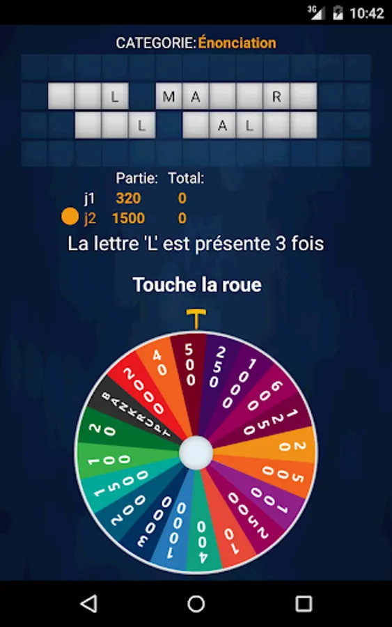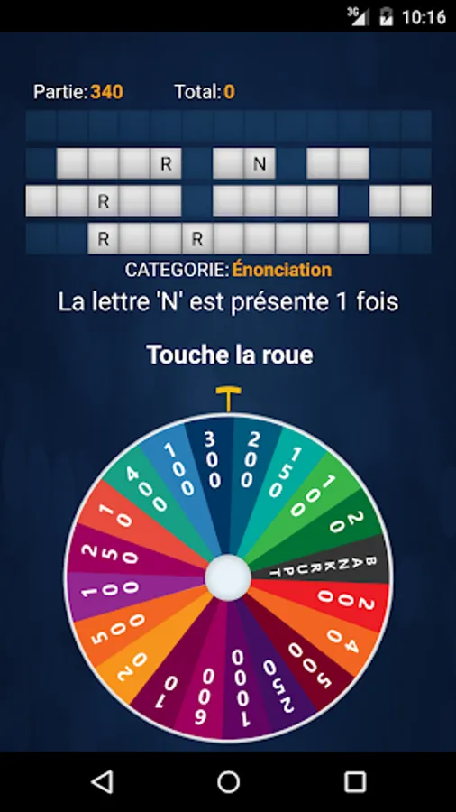 The player must guess the word or phrase of the selected category. Before you choose a letter, the player must spin the wheel by tapping it. The points selected by the wheel is the number of points earned every time the selected consonant appears in the word or phrase.