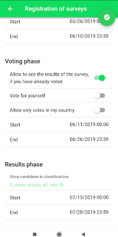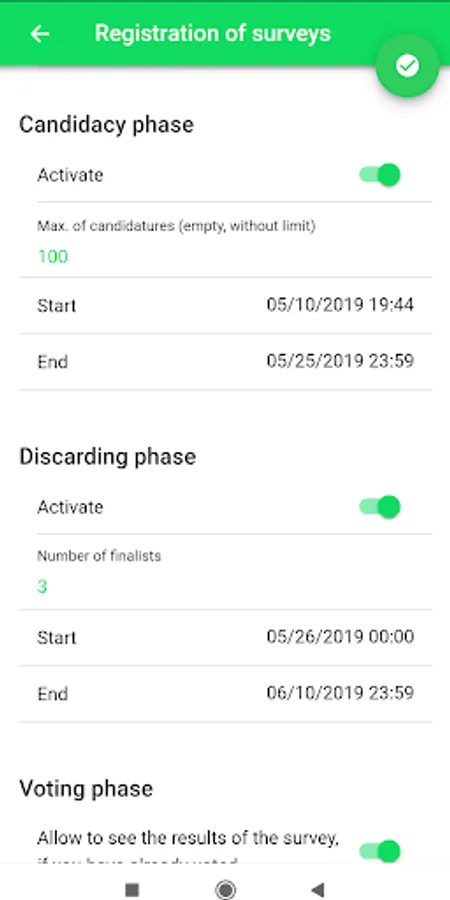 The definition of the surveys is completely parametrizable. The different phases are parameterized with the start and end date, so that we automatically pass from one phase to another without the need for any manual action.