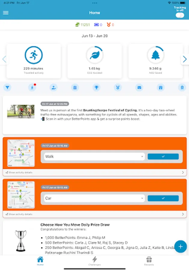 The BetterPoints app is the home of programmes designed to motivate people to behave more healthily and sustainably, such as walking, cycling, and eating better.