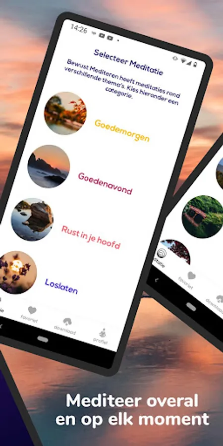 Sta sterker in het leven dankzij de Bewust Mediteren app. Iedereen kan op eender welke leeftijd leren mediteren en vanaf 2 minuten per dag is het verschil al merkbaar in ons brein. Door meditatie sta je bewuster en gelukkiger in het leven, ervaar je minder stress, slaap je beter en versterkt je immuunsysteem. Het heeft positieve effecten op hoe jij je voelt en gedraagt op het werk, thuis en in stresssituaties.