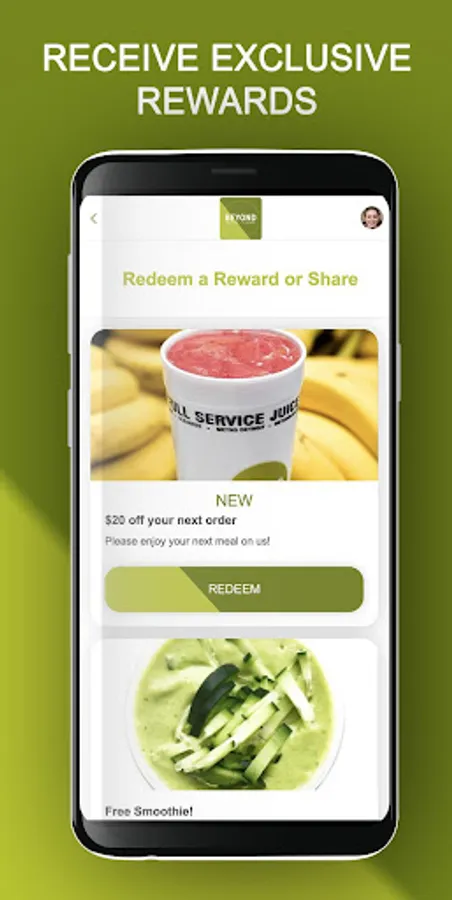 Now you can always be close to your local neighborhood full service juice bar. The Beyond Juicery + Eatery app lets you order fresh, healthy food for pickup or delivery. Become part of our growing Beyond Loyalty program where you earn money back on all purchases.