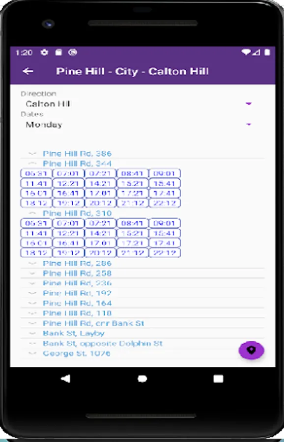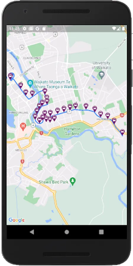 Application to locate routes and time tables for buses in Waikato, New Zealand