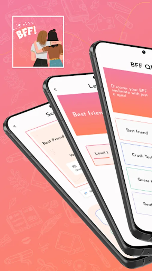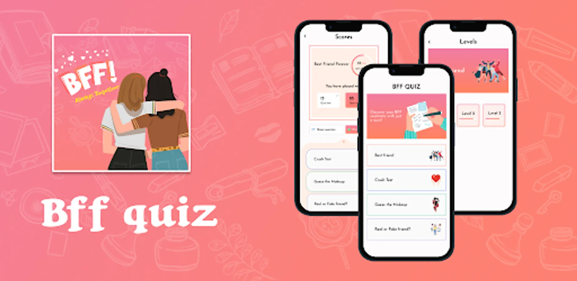 Ignite Your Friendship Bond with BFF Quiz! Our BFF Test - Relationship Quiz App is you passport to friendship mastery. Let our BFF Quiz reveals all! The Best Friend Quiz app offers many fun quizzes to help you understand your best friends and loved ones. The quiz your friends app comes with an ad on like daily journal and zodiac signs information.