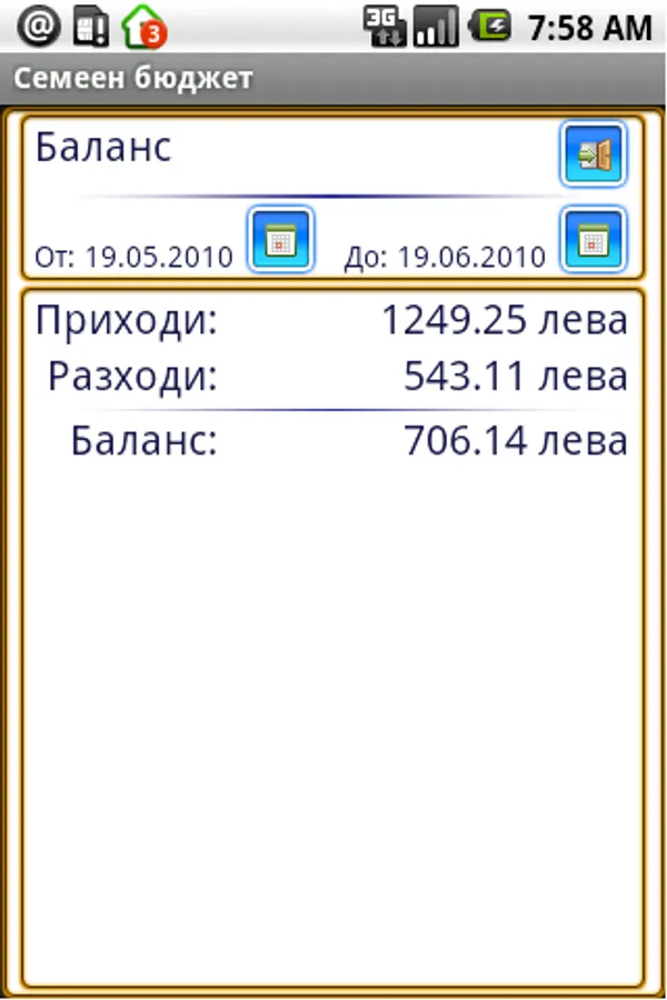 Introduction of revenues, expenses, requests dishes and products. Transferring products into applications. Automatic transfer requests (after implementation and value) in costs. Displaying the information and calculate the balance (difference between revenue and expenditure) for a selected period of time. Designed for: M-Tel and HTC.