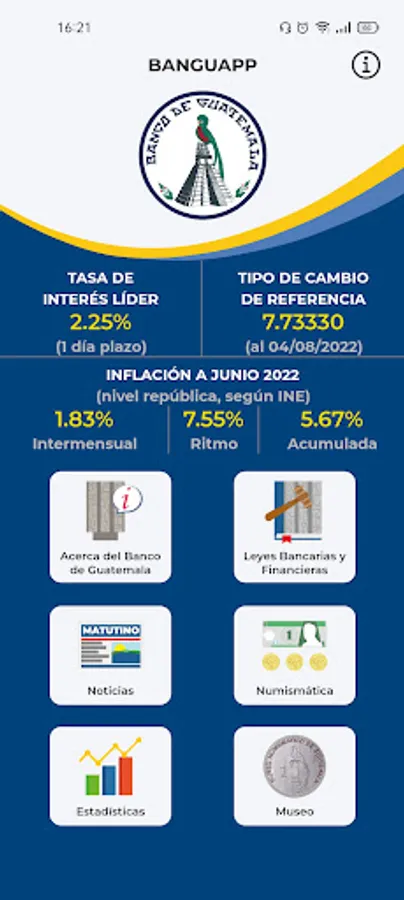 You will find important statistical information, economic variables such as the daily exchange rate, leading rate, inflation, among others. You will be able to know in depth about the Guatemalan currency, information of interest related to the numismatics of our country and you will be able to see information about the Numismatic Museum, schedule a guided visit, group talks, and much more.