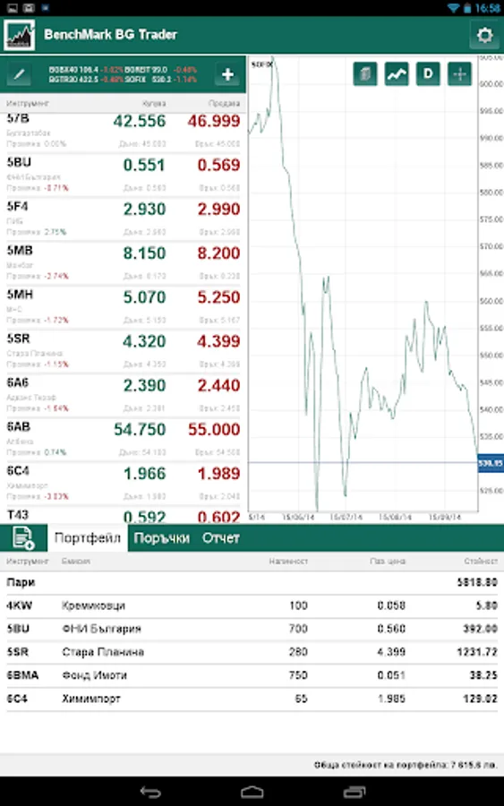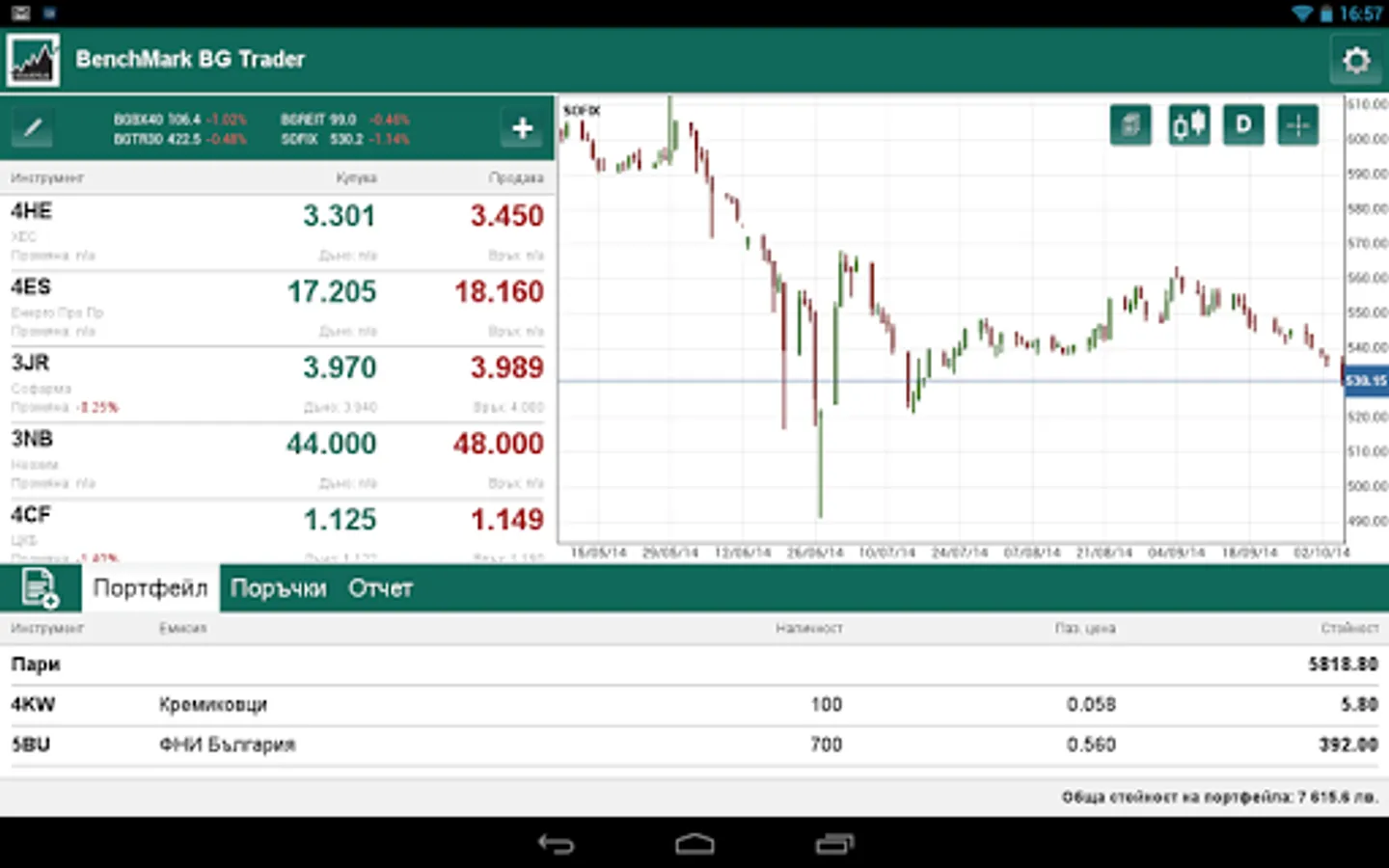 Mobile BG Trader is the first mobile application for trading on Bulgarian stock exchange. The app is highly customizable and fully synchronized with the desktop version of the platform BenchMark BG Trader and its web version Web BG Trader itself.