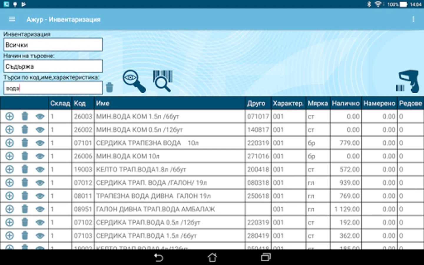 Facilitates the inventory process of goods in the warehouse. Mobile devices reduce the inventory time of MHs. Convenient and fast, allowing multiple users to take inventory simultaneously. It is also possible to work with a bluetooth barcode reader, offline work at a remote location, as well as in real time, local area network and WiFi. Allows collecting barcode information by product for pre-loading the nomenclature. You need to have a purchased desktop version of Azhur® Warehouse and Module to work with the mobile application.
