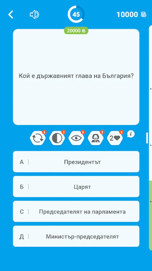 Just like you would expect in famous TV shows, you should answer the questions in the Bulgarian language and climb your way up the money tree to become the ultimate virtual millionaire of Bulgaria.