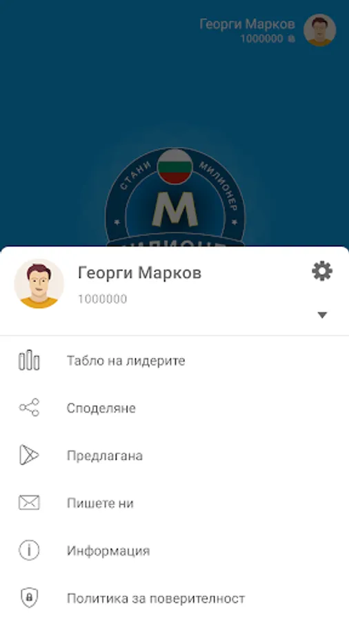 Gain knowledge by answering questions on the number one quiz game (Millionaire Bulgaria) about the history, famous people, celebrities, art, sport, culture, national attributes, cuisine, national meals, general knowledge and geography of Bulgaria in the Bulgarian language (Your mother tongue).