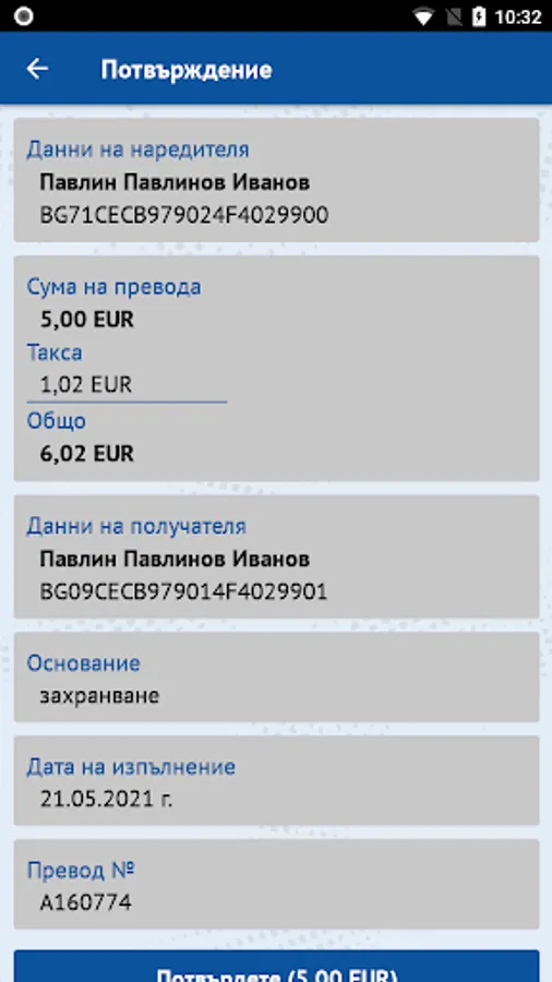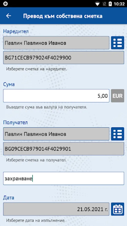 • Transfers in BGN and foreign currency in the country and abroad – between own accounts, to random recipients and pre-set counterparties;