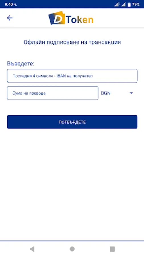 D Token is a mobile application (software token) for authentication and confirmation of transactions and requests in the D Bank Online platform, which provides convenience, reliability, mobility and uncompromising security when working with the electronic banking.